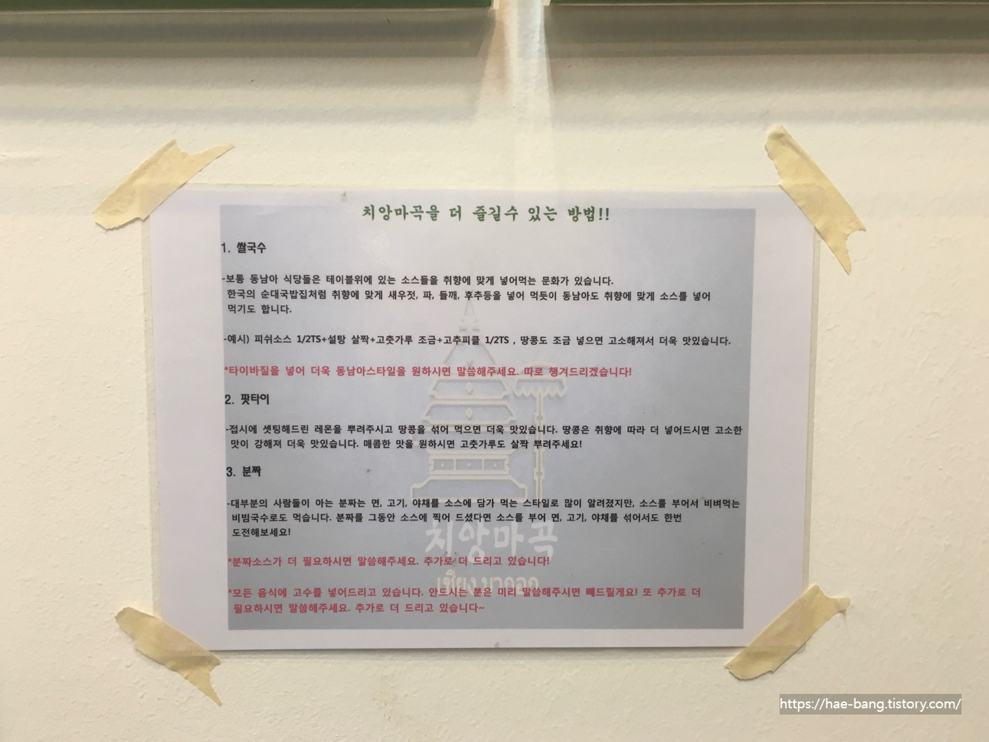 우연찮게 치앙마곡이라는 네 글자를 발견 한 순간부터 식사를 마치고 매장을 나서는 마지막까지, 제게는 이 모든 것이 치앙마이만큼이나 따듯하고 즐거운 시간이었습니다.