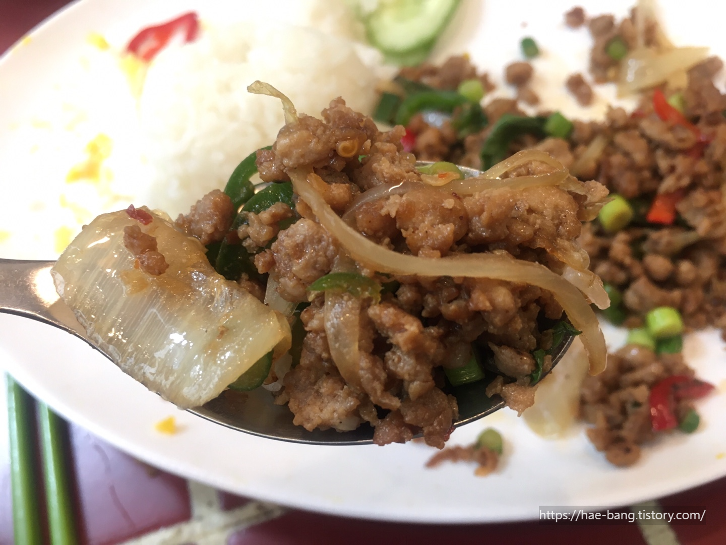 팟카파오무쌉 한입 먹고